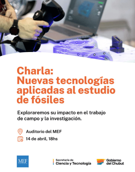 El Gobierno del Chubut, junto al Museo Paleontológico Egidio Feruglio (MEF), invita a la comunidad a la charla gratuita “Nuevas tecnologías aplicadas al estudio de fósiles”, que se realizará el lunes 14 de abril a las 18 horas en el auditorio del MEF, en Trelew.