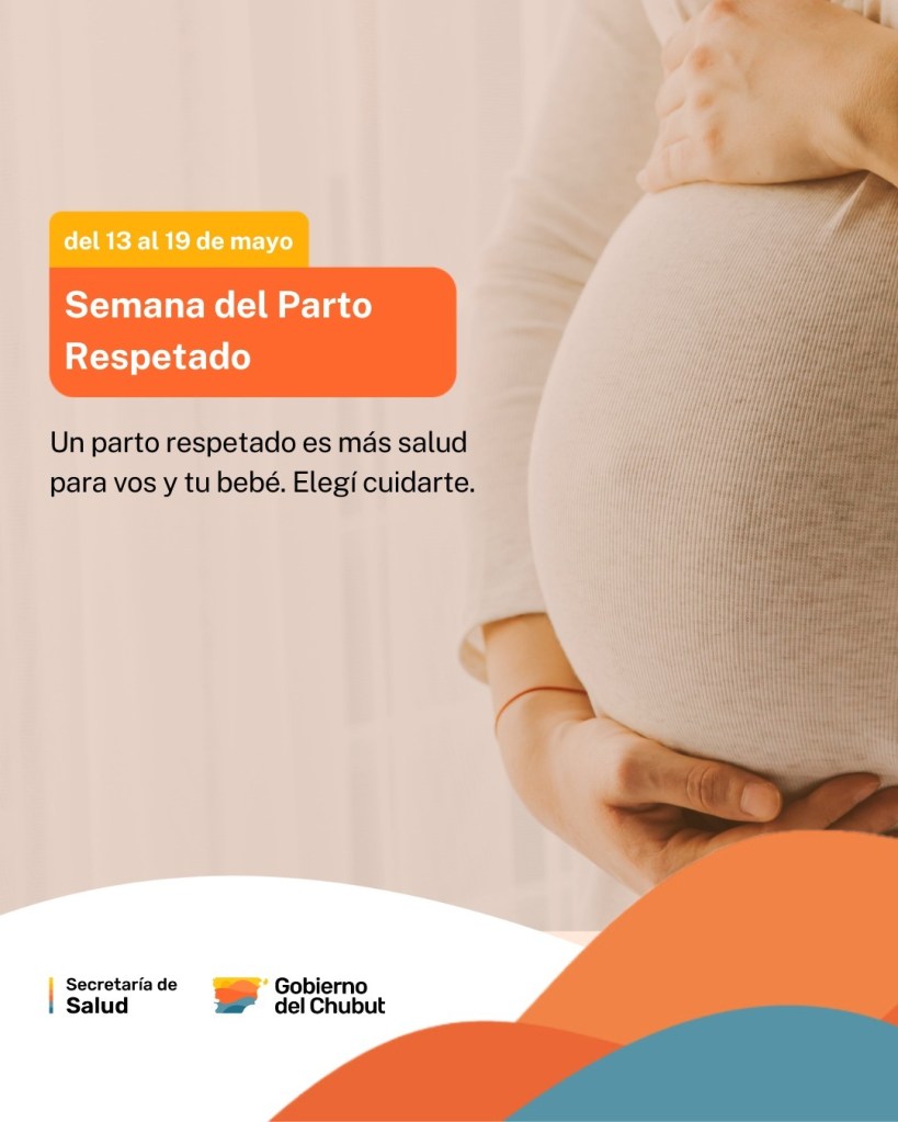 El Gobierno del Chubut, a través de la Secretaría de Salud, se suma a la conmemoración de la “Semana Mundial del Parto Respetado 2025”, que se desarrolla entre el 13 y el 19 de mayo. La iniciativa contempla actividades de concientización y prevención, bajo un mensaje que invita a reflexionar sobre el nacimiento y el respeto integral hacia la persona gestante y su bebé.
