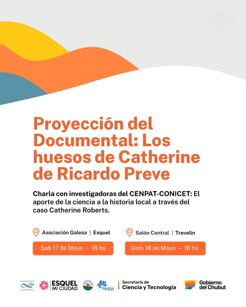 El evento comenzará con la proyección del documental “Los Huesos de Catherine”, dirigido y escrito por Ricardo Preve. Esta producción argentina de 2015 relata con precisión la historia de Catherine Roberts y el riguroso proceso científico desarrollado en torno al análisis de sus restos. La proyección ofrecerá a los presentes un panorama claro del trabajo realizado y de los valiosos descubrimientos obtenidos.