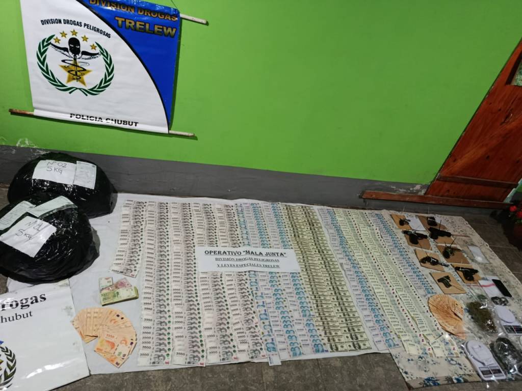 La causa, denominada «Mala Junta», comenzó tras una denuncia anónima que apuntaba a un individuo de Trelew como distribuidor zonal de cocaína y marihuana, quien abastecía puntos de venta “al menudeo” y mediante modalidad “delivery” en diferentes zonas de la ciudad. Además, se utilizaron domicilios como “acopio” o “depósitos” para las sustancias.