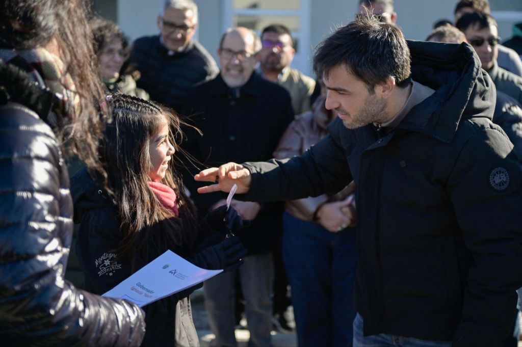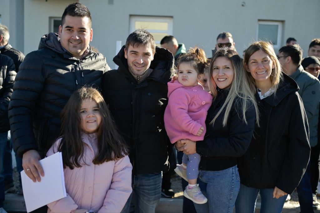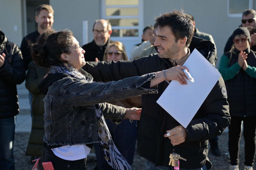 Cuarenta familias de Trelew recibieron este sábado las llaves de su primera vivienda en el barrio Sutiaga, en un acto encabezado por el gobernador Ignacio “Nacho” Torres, quien además anunció que solicitará al Gobierno Nacional el traspaso de 204 unidades del Pro.Cre.Ar. que se encuentran al 90% de ejecución.