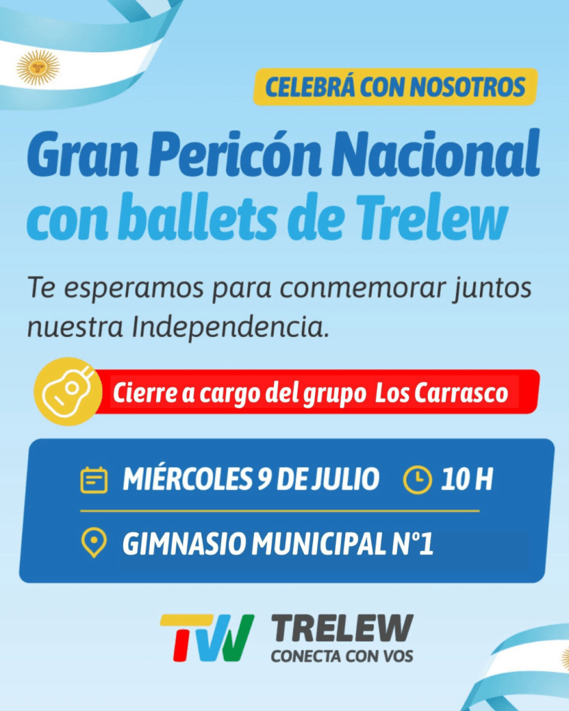 La Municipalidad de Trelew invita a toda la comunidad a compartir una jornada especial para conmemorar el Día de la Independencia, con una propuesta cargada de arte, identidad y participación popular.