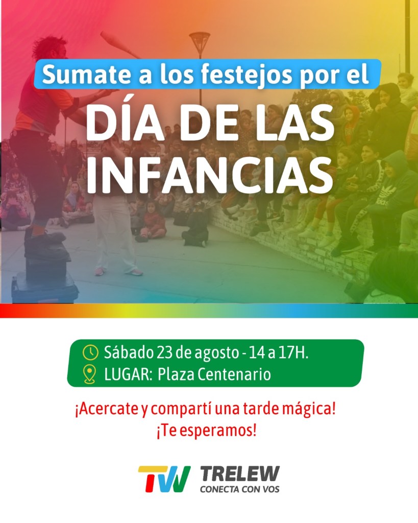 Este sábado 23 de agosto, de 14 a 17, la plaza Centenario se vestirá de fiesta para celebrar el Día de las Infancias, con una jornada pensada para que niños, niñas y familias disfruten en comunidad.