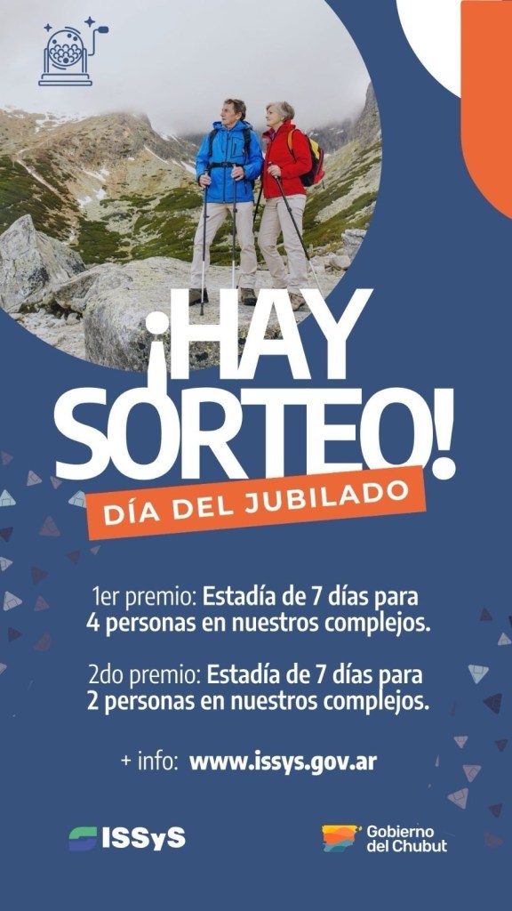 El Instituto de Seguridad Social y Seguros del Chubut (ISSyS) lanzó un sorteo por el Día del Jubilado, que se celebrará el 20 de septiembre.