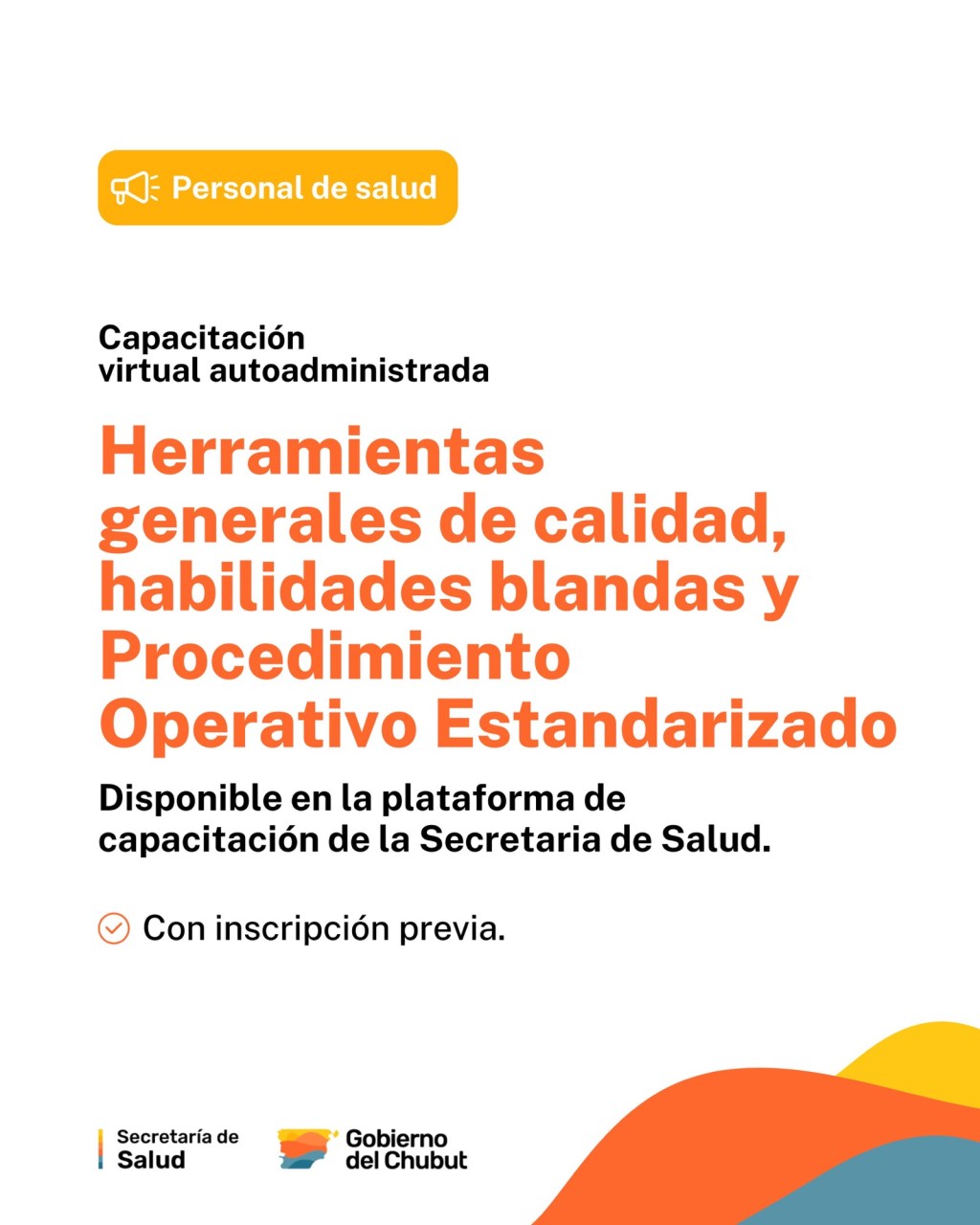 Con el objetivo de optimizar los servicios del sistema sanitario público y jerarquizar al personal, el Gobierno del Chubut, a través de la Secretaría de Salud, abrió las inscripciones para la capacitación “Herramientas generales de Calidad, habilidades blandas y Procedimiento Operativo Estandarizado (POE)”.