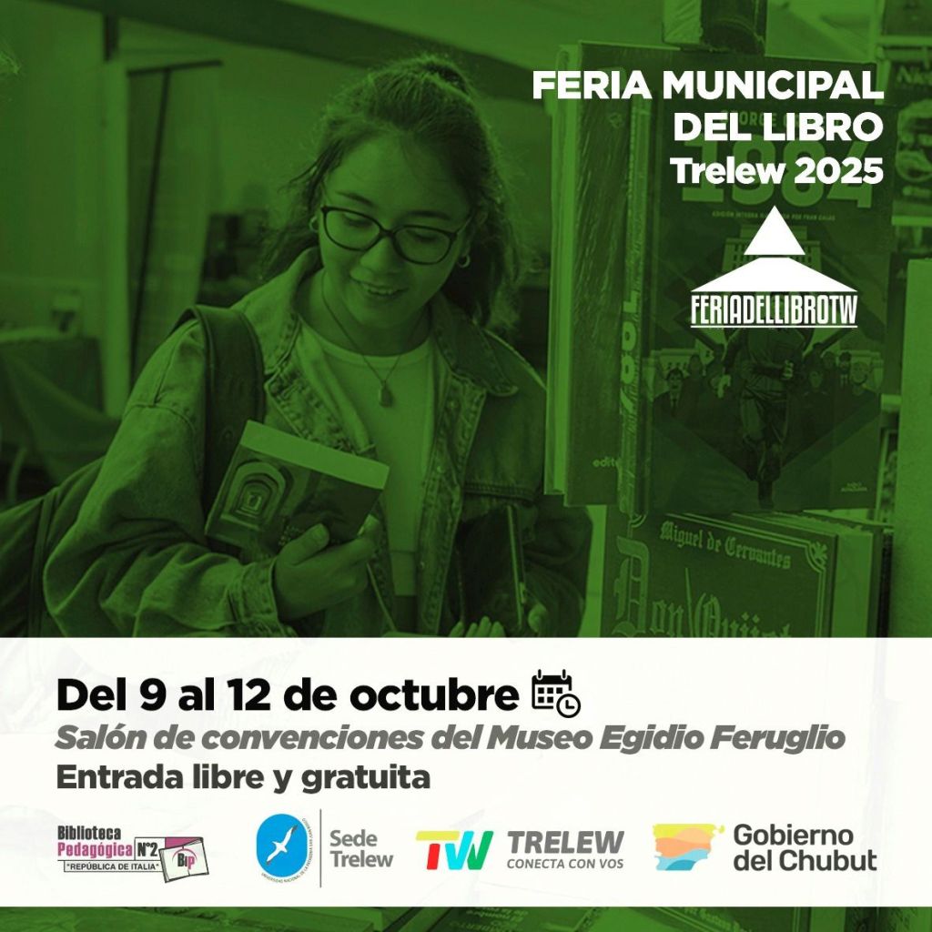 El evento, organizado por la Municipalidad de Trelew junto a la Biblioteca Universitaria Gabriel A. Puentes (BUGAP), la Universidad Nacional de la Patagonia San Juan Bosco y la Biblioteca Pedagógica N° 2, contará con más de 50 stands, reuniendo escritores, librerías, editoriales y colectivos culturales de todo el país.