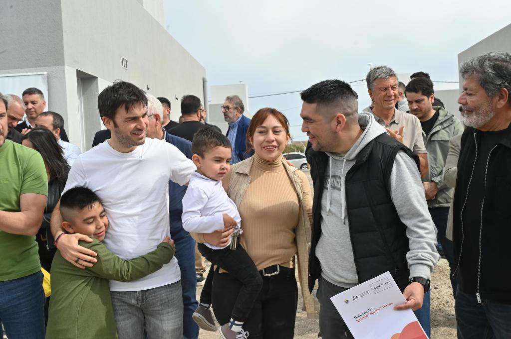 El gobernador del Chubut, Ignacio “Nacho” Torres, encabezó este jueves la entrega de 43 viviendas a familias de Trelew, en un acto que contó con la presencia del secretario general de la UOCRA, Gerardo Martínez. La iniciativa forma parte del compromiso provincial de dar respuesta a la demanda habitacional y fortalecer la obra pública como motor de desarrollo.